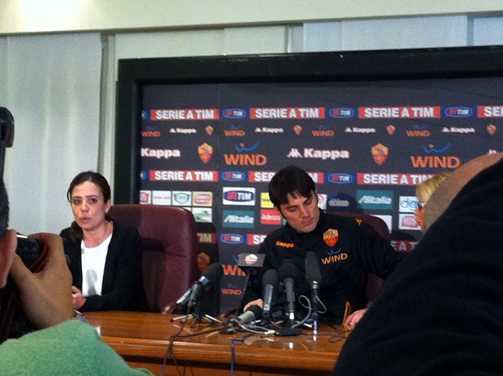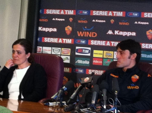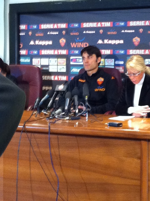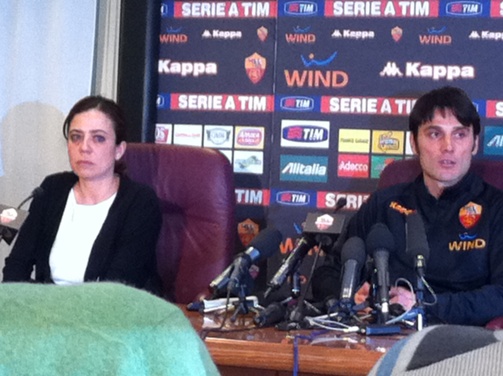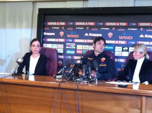 Una carrellata di immagini della presentazione di Vincenzo Montella a Trigoria. Presente, al fianco del neo tecnico giallorosso, anche Rosella Sensi.