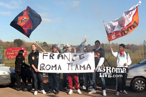 Trigoria: ancora dimostrazioni di affetto da parte dei tifosi giallorossi nei confronti di Francesco Totti. Anche oggi fuori dai cancelli del centro tecnico Fulvio Bernardini, sono stati appesi dei cartelloni per stare accanto al capitano. Tali manifestazioni d’affetto sono iniziate due giorni fa quando all’esterno del centro è stato esposto lo striscione ‘Anche io sono Francesco‘. Oltre allo striscione ‘Francé, Roma ti ama’ di ieri, oggi è apparsa anche la scritta: ‘Totti orgoglio romano e romanista!!! Unico Capitano e Numero 10 di appartenenza e Campione! Tacete invdiosi!”. Nello stesso cartello: ‘Gufi in eterno!’, ‘Grande uomo, stella del calcio’, ‘Number One’.